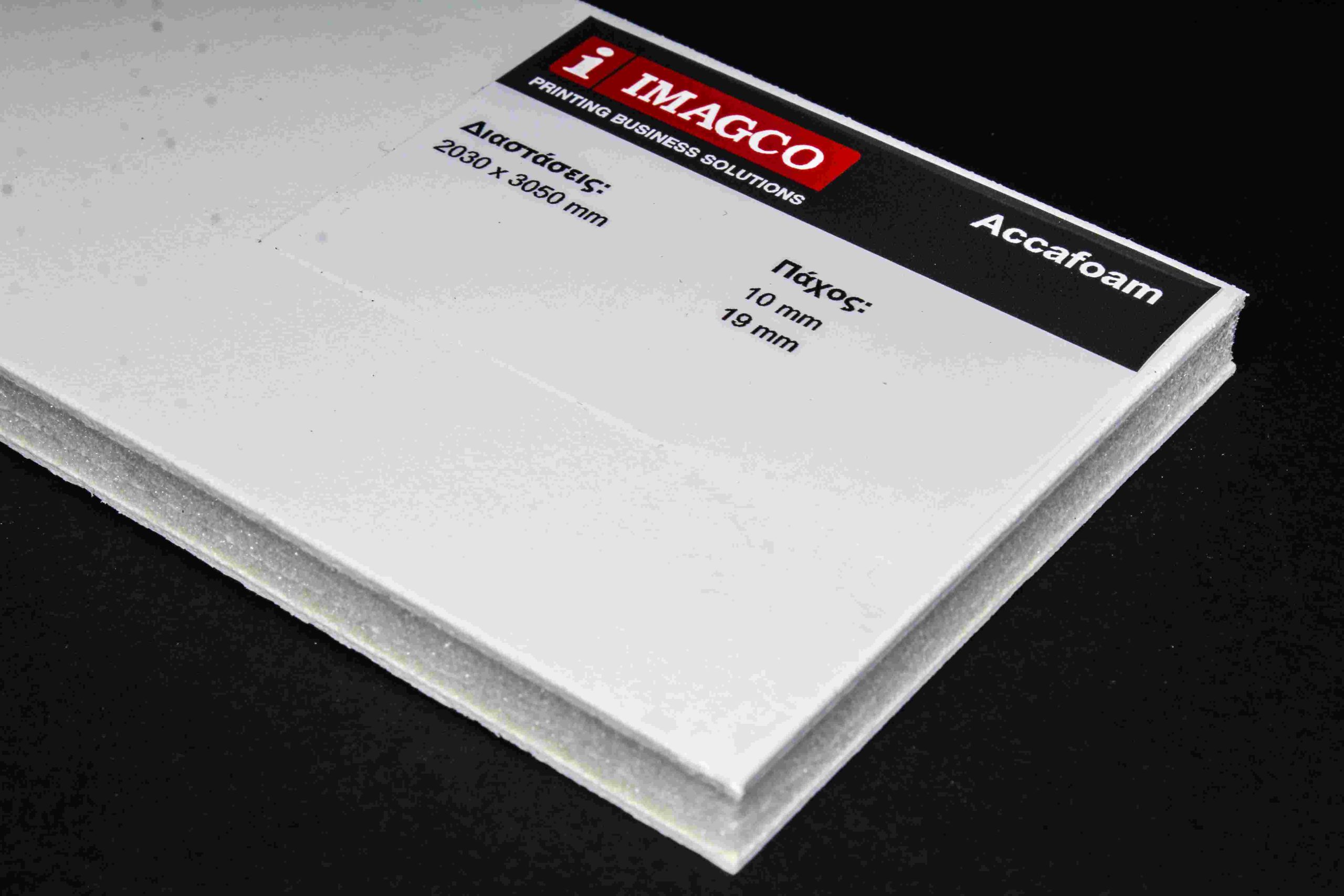 Εκτυπώσιμο λευκό φύλλο PVC πάνω-κάτω και λευκό αφρό εξυλασμένης πολυστερίνης εσωτερικά. Διατίθεται σε πάχος 19mm και διάσταση 2030x3050mm.