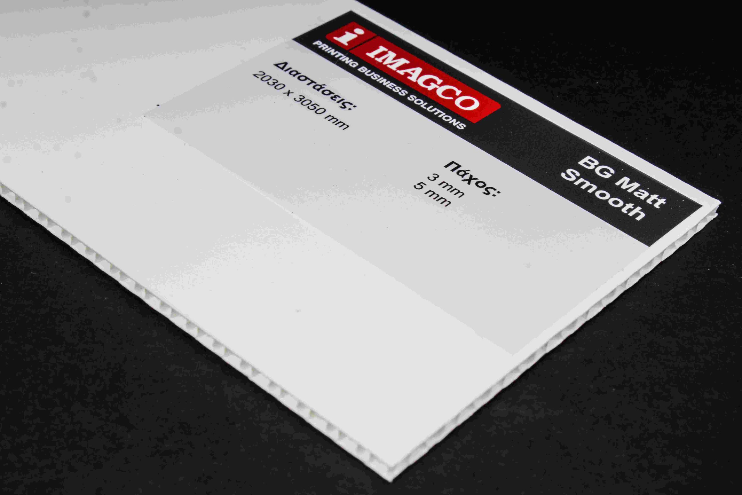 Εκτυπώσιμο λευκό φύλλο PP με κυψελωτή δομή εσωτερικά. Διατιθεται σε πάχος 3mm και διάσταση 2030x3050mm.